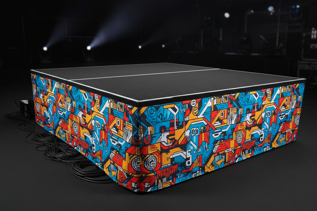 I pakken følger det med velcro tape som man kan bruke på sceneplattingens side.